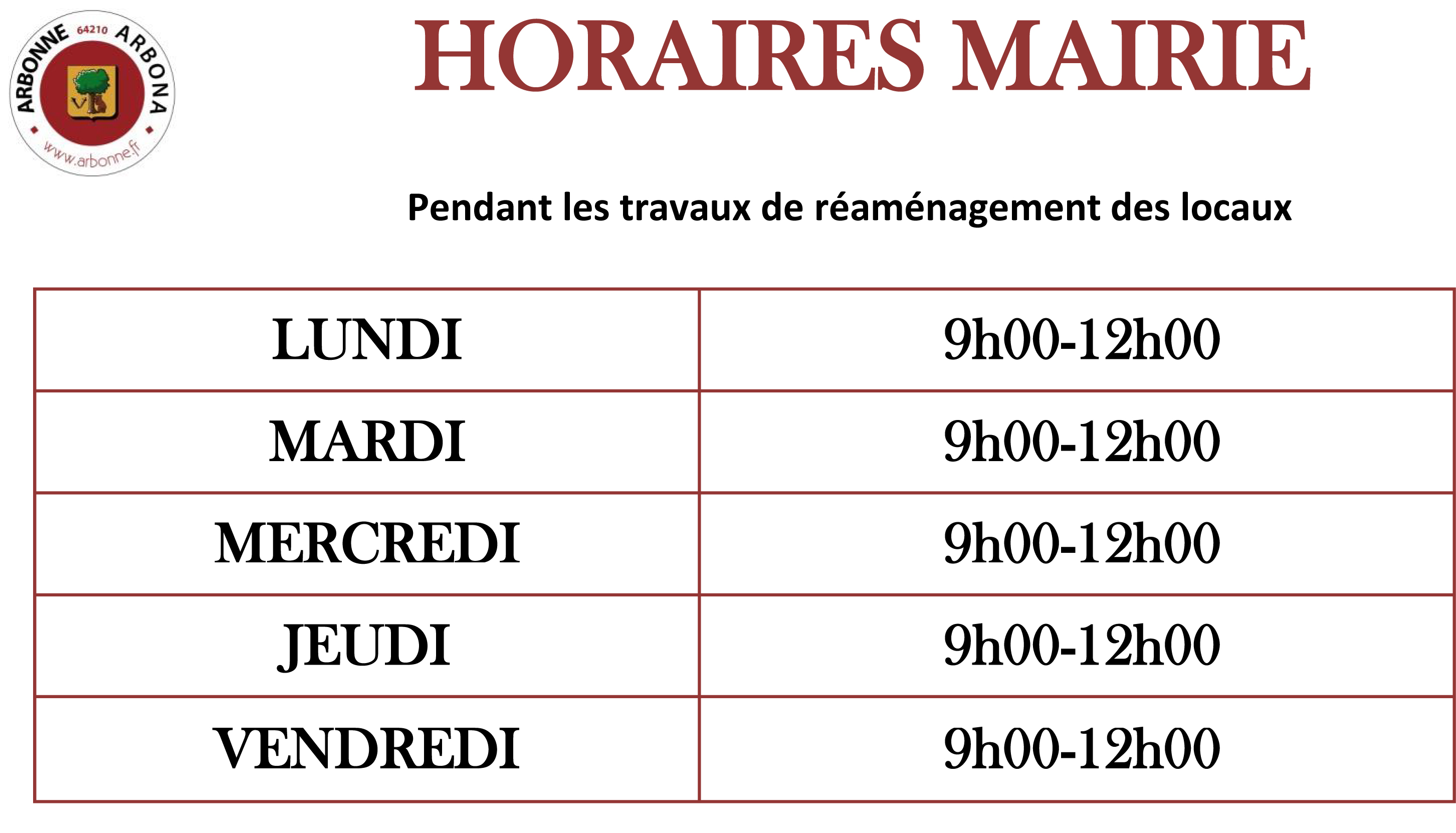 Horaires d’ouverture 2017 déménagement